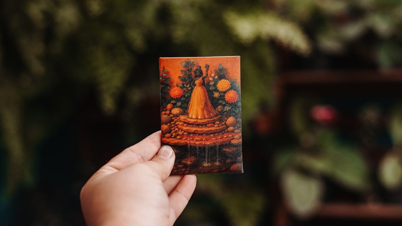 Os Imãs do Axé são pequenos pedaços de arte inspirados nos terreiros e na beleza da Umbanda. Com fotografias e ilustrações exclusivas, cada ímã traz um recorte visual cheio de identidade e memória afetiva. Ideais para decorar sua geladeira, painel de fotos ou qualquer cantinho especial.